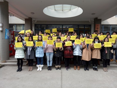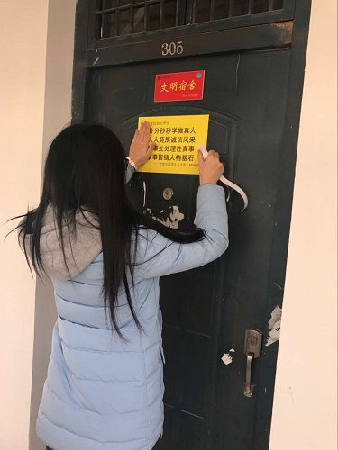 12月14日,在期末考试即将来临之际,管理学院学生五支部联合2014级学习部、团支部联合开展了“做诚实守信的大学生”诚信考试标语进宿舍活动。这次活动在管理学院2014级辅导员赵春梅老师和杨金兰老师的带领下展开,31名预备党员和各班学习委员、团支部书记积极参与了本次活动。