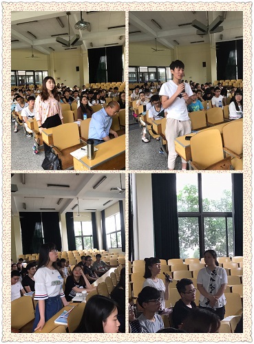 夏至未至,烁玉流金,一场大暴雨过后,校园恢复了往日的凉爽。2017年6月15日下午,在班主任刘宁老师的组织下,16级人力资源管理专业的同学们在教东阶梯教室组织了一场学习经验交流分享会。B161114班班主任张新岭老师,16级辅导员闾越老师和13、14级的优秀学生:张瑞可、谢斐然、刘纬宇和祝梦琳参加了此次交流会。