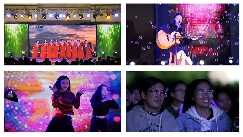 晚会伊始,管理学院党委书记江森发表了热情的致辞,希望“新南邮人”拥有蓬勃的朝气和自信的态度,表达了对2017级小柚子们的热烈欢迎及殷切的期望。晚会在Espresso乐队带来的歌曲《自由》和《shut up》中开场。梦幻的镁光灯不断聚焦,迅速将现场观众拉进了晚会的欢快气氛中,随之欢呼雀跃。晚会融合了歌舞类、语言类、创新创意类别出心裁的节目,其中还融入了诸多中国风的元素。《沧笙踏歌》静水流深,《武动乾坤》气贯长虹。校老年艺术团带来女声小合唱《期待》,《你都如何想念我》引发回忆,亦或是想着《她来听我的演唱会》、《甜蜜暴击》,在《小人舞》与《美女与野兽》的童话世界里翩翩起舞。小品类节目使现场气氛轻松欢快,晚会现场气氛热烈。其中《I am hiphop》《Warning》等街舞类节目更是将全场气氛推向高潮。晚会期间安排抽奖环节,观众们热情高涨。整场晚会高潮迭起,惊喜层出不穷。期间安排的神秘嘉宾节目,由新生辅导员蔡珺老师带领的柚子青年们传递不一样的“南邮爱”,新生辅导员陈大鹏老师深情献唱《鸿雁》。最后,在管理学院学生会文艺部以及全体演职人员带来的合唱《爱》中缓缓落下帷幕。