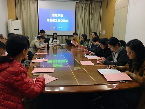为了充分发挥专任教师在大学生成长成才过程中的重要作用,进一步加强班主任队伍建设,2017年11月1日下午,管理学院班主任工作交流会在科学会堂第二会议室召开。会议由管理学院党委副书记、副院长邓艳华主持。管理学院2017级全体班主任、新生辅导员出席了本次会议。
