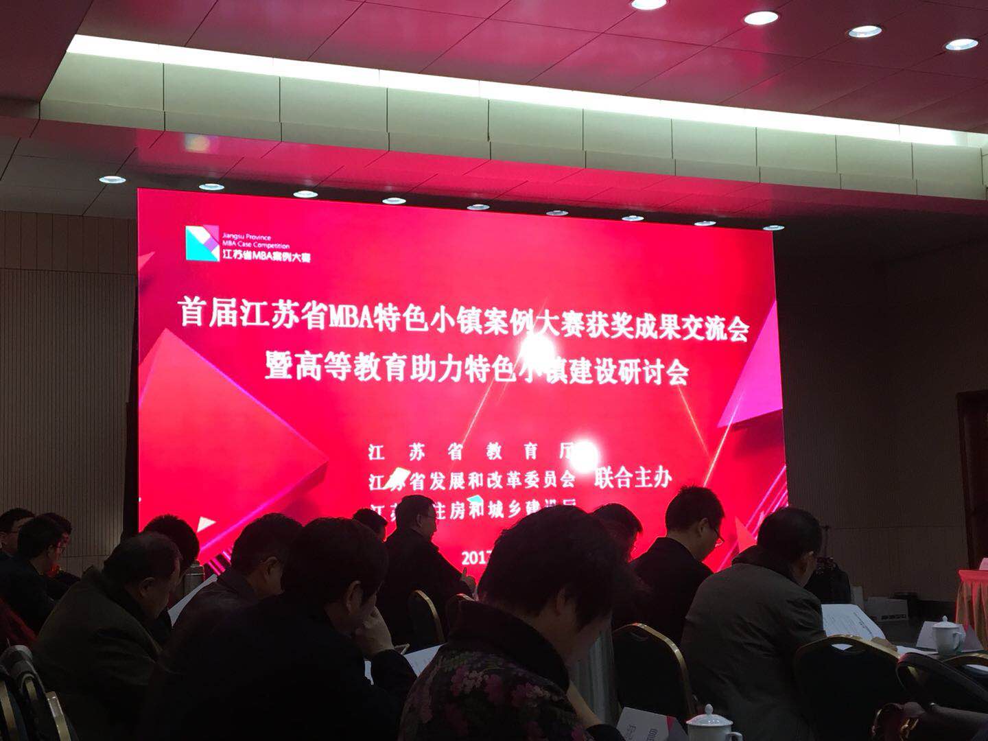 2017年12月20日下午,首届江苏省MBA特色小镇案例大赛成果交流会暨高等教育助力特色小镇研讨会在南京隆重举行。政府官员、专家学者、特色小镇负责人、MBA学生聚集一堂。江苏省教育厅葛道凯厅长等领导出席了本次会议。南京邮电大学党委副书记、纪委书记朱永平教授、研究生院常务副院长吴蒙教授、管理学院院长黄卫东教授出席此次会议。
