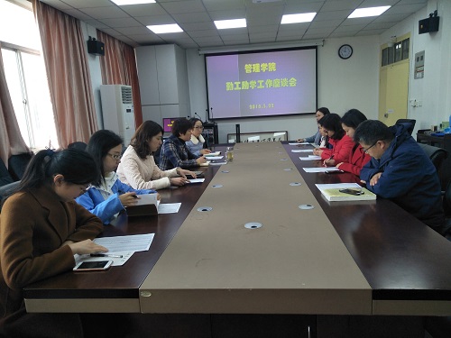 为进一步做好勤工助学工作,提升工作质量和水平,积极发挥勤工助学的育人功能, 3月22日上午10点,管理学院在有线楼306会议室组织召开勤工助学工作座谈会。全院各单位都选派了负责勤工助学工作的老师出席,座谈会由管理学院党委副书记邓艳华主持。