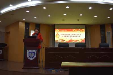 12月5日晚六点半,中共南京邮电大学第三次代表大会管理学院代表选举大会在三牌楼校区科学会堂一楼报告厅举行。管理学院各党支部共142位党员出席会议,大会由管理学院党委副书记邓艳华主持。