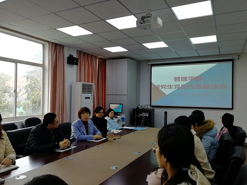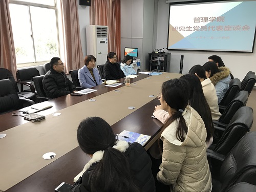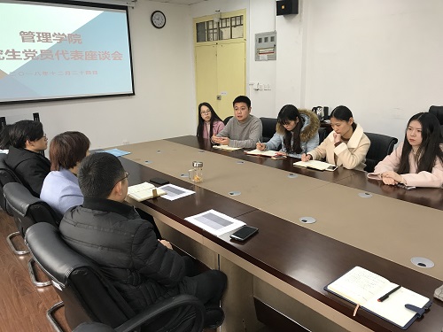 2018年12月24日中午,管理学院在有线楼306会议室召开了研究生党员代表座谈会,管理学院副院长朱卫未,研究生辅导员华奕曦以及本科毕业于管理学院的研一、研二党员代表出席了座谈会,座谈会由管理学院党委副书记邓艳华主持。