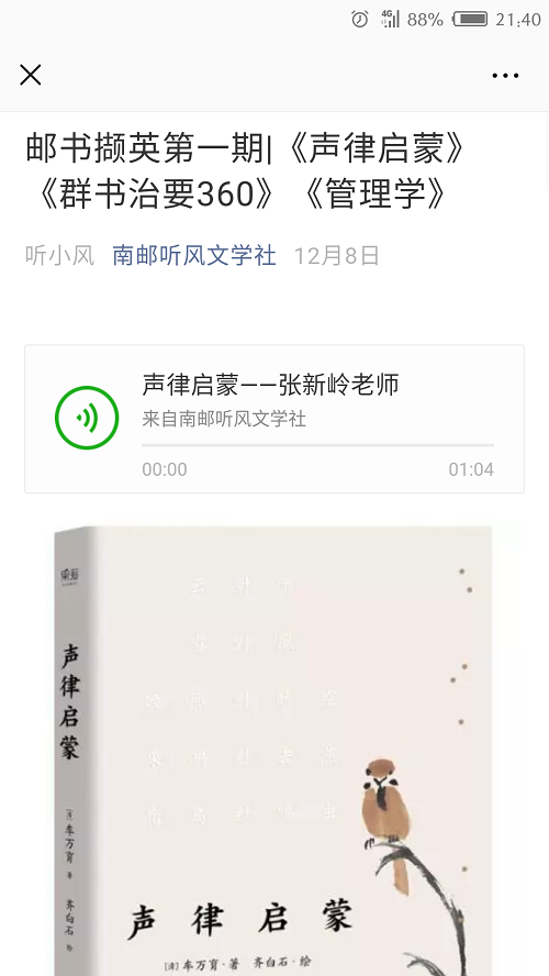 在本次活动中,学院全体2018级班主任老师积极参与。每位班主任老师向同学们推荐了三本书,17位班主任共推荐了51本书籍,涵盖了古典文学、人物传记、近现代小说、专业类书籍等内容。班主任老师除了推荐书籍之外,还从各自推荐的书籍中,精选出经典段落阅读。声情并茂的有声读物不仅让同学们更加深刻的理解书籍的内涵,也让大家领略到了班主任老师多才多艺的另一面。