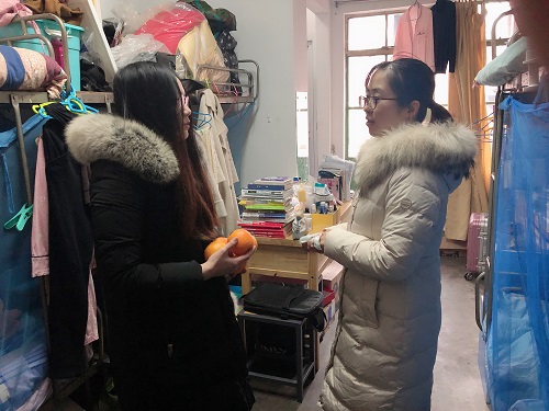 期末走来,新年渐近,12月26日,管理学院开展了心想事“橙” 温暖“邮”你走访学生宿舍活动。学院党委副书记邓艳华以及各年级辅导员走进学生宿舍和研究生工作室,在表达新年祝福的同时,也为本学期宿舍考评成绩优良的宿舍带去慰问品。