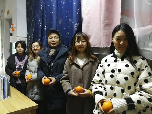 同时,对于本学期宿舍考评成绩优良的宿舍,老师们代表学院为大家送上一个个橙子,心想事“橙”,既是同学们对新年新气象的期待,能是老师们对大家在未来能有所“橙”就的期待。