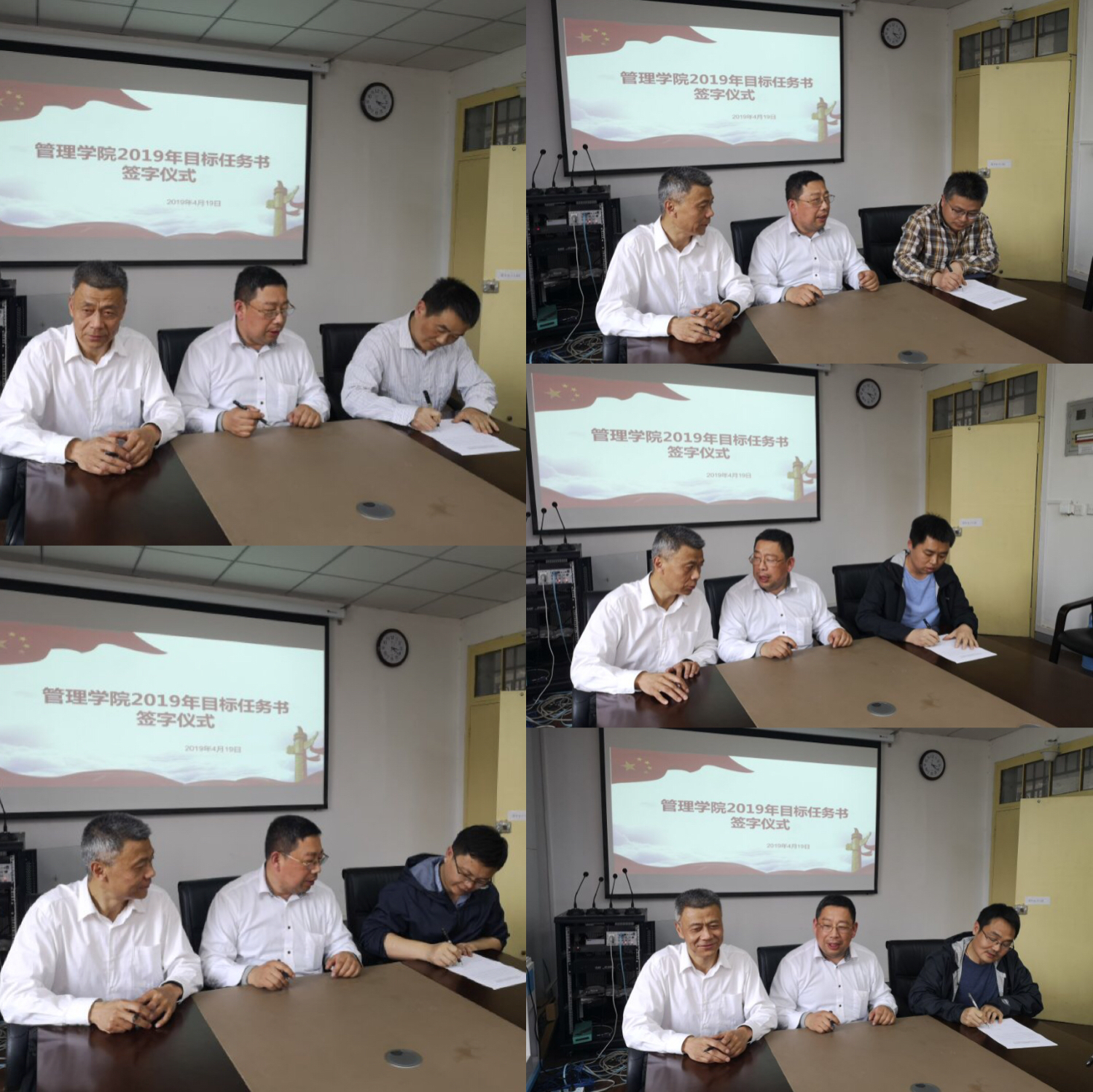 随后,黄卫东院长和江森书记代表学院和各三级机构负责人签订了2019年三级机构目标任务书。