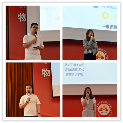 在主持人介绍了我校“梦想公开课”的概况之后,六位主讲人依次上台,结合自己四年的大学生活,分别从科研竞赛、班级