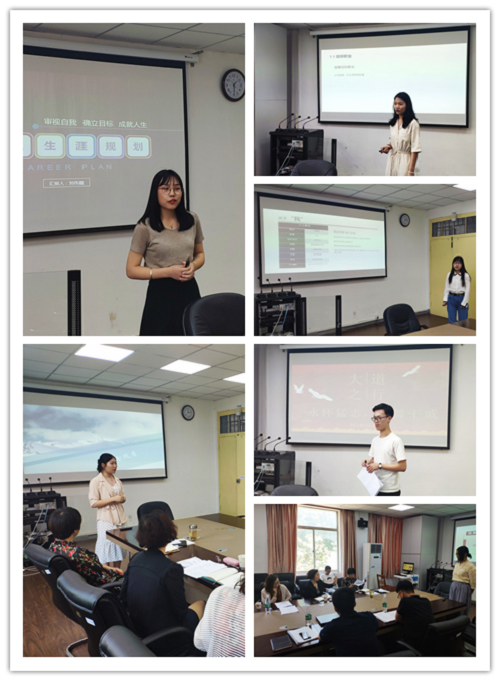 在经过抽签之后,六位参赛选手依次上台,分别从职业规划、生涯人物访谈、职业体验报告等方面详细阐述。内容丰富,语言生动的演讲搭配着精心制作的PPT吸引着评委们的眼球,参赛选手的表现在得到了评委们的欣赏和认可。同时,各位评委也对每位参赛选手的作品、展示指出了针对性指导改进意见,包括文本材料的撰写、PPT的内容和细节的改进,以及演讲时的技巧等。并希望他们能通过本次比赛,对自己的职业规划有着更加清晰认识,合理规划职业、规划人生。