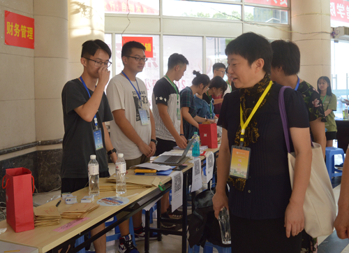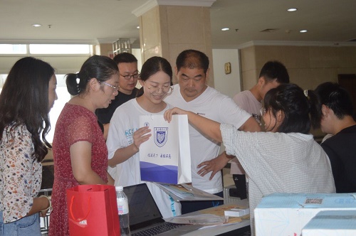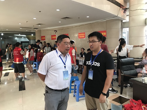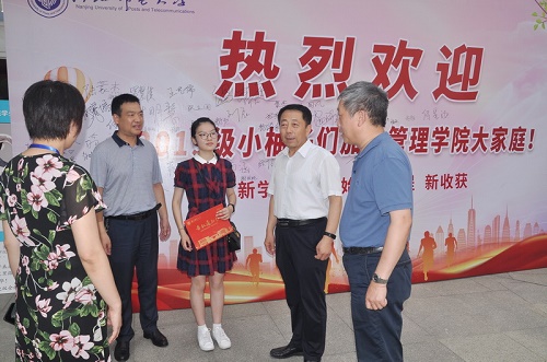 校党委副书记、副校长王宗荣和新生及家长亲切交谈