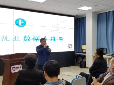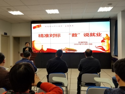 2019年11月13日下午,管理学院在三牌楼校区图科楼二楼西侧路演大厅召开就业专题研讨会,邀请江苏省招生就业指导中心蒋晨阳处长担任主讲嘉宾,并作题为“南京邮电大学管理学院就业数据校本化解读”报告。学院党委理论学习中心组成员、各系部主任、党支部书记,全体辅导员参加研讨会,院党委朱清书记主持会议。学校主题教育指导组组长谢玉华书记、杨琳老师,招生就业处胡玉东处长、蒋琴雅老师到场指导。