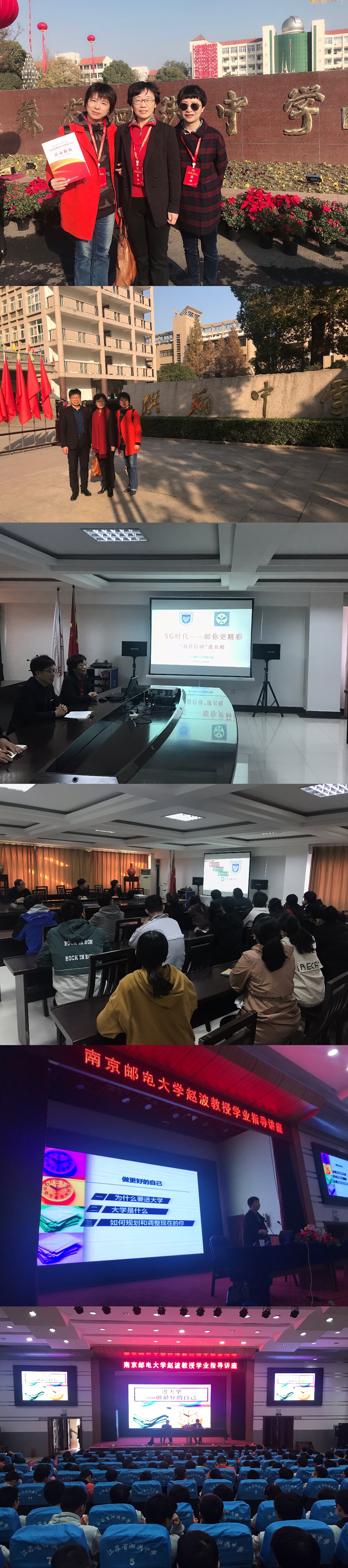 为更好服务于中学人才培养,进一步深化生源基地中学建设,深入推进招生宣传工作常态化,2019年11月15-16日,管理学院朱清书记、邓艳华副书记、赵波教授一行奔赴泗洪,以江苏省泗洪中学七十周年校庆为契机,精心实施百名教授(博士)进百所中学行动的“双百行动”,为泗洪中学和洪翔中学在校生开设讲座,帮助学生做好人生规划,树立奋斗目标。