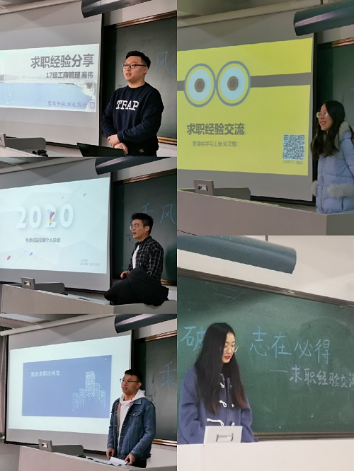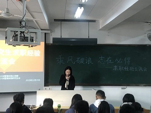 2019年12月19日上午9:00,南京邮电大学管理学院研究生会于三牌楼校区教东304教室成功举办了学术类研究生求职经验交流会,本次会议邀请了五位在求职就业方面有代表性的研三同学与研一、研二同学见面交流,分享各自的求职经验及体会。管理学院研究生辅导员华奕曦老师和2018级、2019级部分研究生同学参加本次交流会。
