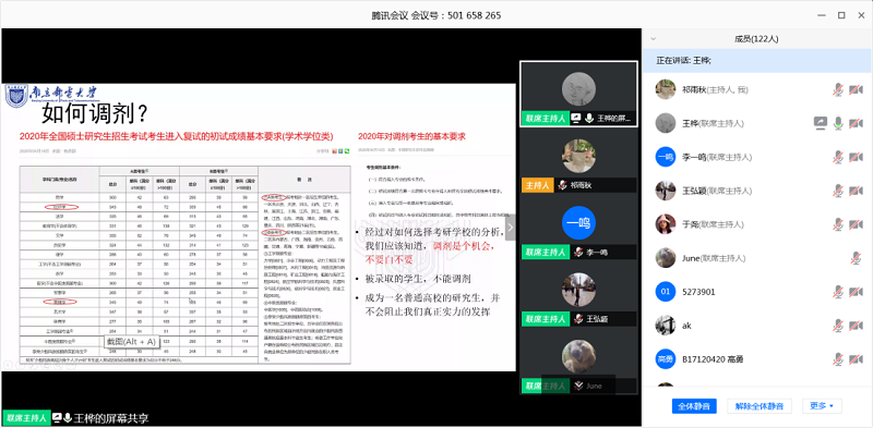 为了帮助同学们树立考研目标,寻找到适合的考研道路,管理学院于4月21日晚开展线上考研经验分享会。本次分享会由李一鸣老师主持,特邀两位优秀青年教师王桦、王弘颖老师进行考研指导,两位优秀研究生代表于尧、陈旭结合自身考研经历进行经验分享,管理学院2017级意向考研同学踊跃参与。