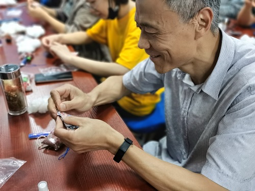 活动伊始,学院工会负责人表达了学院对教师们的节日祝福。香囊制作老师现场传授了中草药香包和纯植物精油驱蚊喷雾的做法和疗效,空气中弥漫着沁人心脾的香味。参与活动的老师一边仔细聆听一边飞针走线,将对亲友的祝福与浓浓的传统文化底蕴缝进精巧的香包里。现场气氛热烈,不时传来欢声笑语,大家在轻松祥和的氛围中度过了一个愉快的下午。