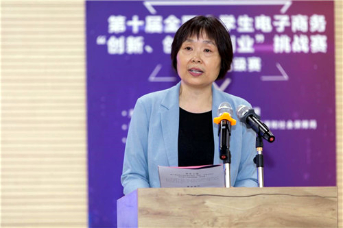 随后,彭丽芳教授代表全国电子商务类教指委和大赛全国组委会上台致辞,彭丽芳教授指出“三创赛最早于2009年开展,如今已是电子商务领域的顶级大赛。也是激发大学生兴趣与潜能,培养大学生创新意识、创意思维、创业能力以及团队协同实战精神的学科性竞赛,对开展创新教育和实践教学改革、加强产学研之间联系起到积极作用。彭丽芳教授充分肯定了南京邮电大学为本次大赛的顺利举办所做的努力,认为江苏赛区三创赛组织严密、流程规范且办的有声有色。