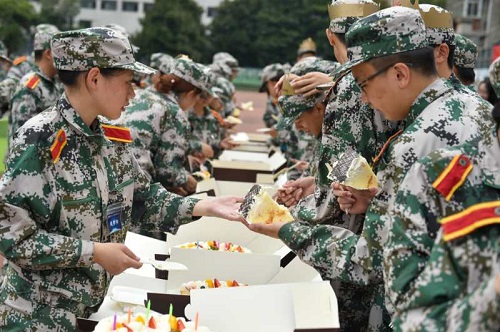 9月21日,管理学院党委书记朱清、校人武部副部长吴波、党学院委副书记张建颖以及新生辅导员等领导和老师前往军训训练场地慰问2020级近500名新生,并为54位九月出生的同学举办了一场别开生面的集体生日会。
