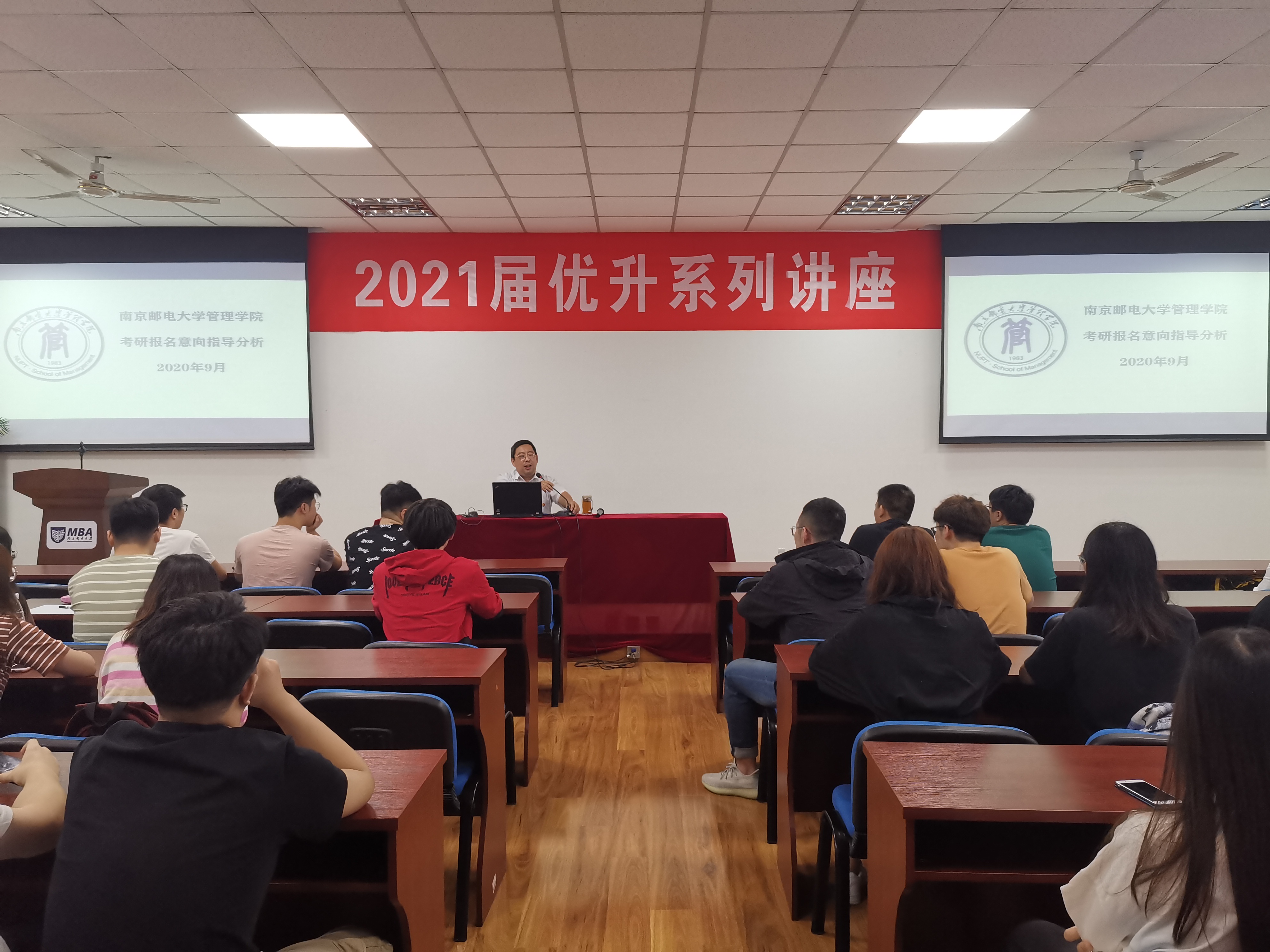 受新冠肺炎疫情影响,2021届考研形势愈加严峻。为加强对2021届毕业生考研目标院校的引导和备考过程的指导,9月22日-26日,学院特邀管理学院院长黄卫东、经济学院副院长杨小军、计算机学院、软件学院、网络空间安全学院副院长黄海平、南京师范大学研究生院副院长兼招生办公室主任薛枫做专题讲座。