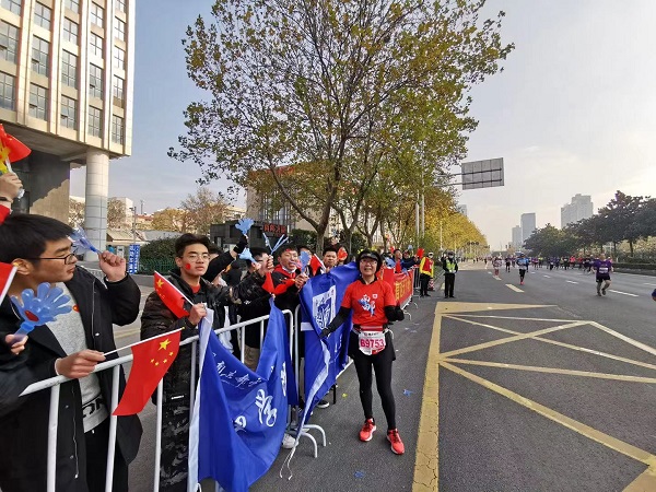 志愿队伍数日的准备,只为南马的一个上午。从选拔志愿者、培训到分工协作,管院师生没有丝毫懈怠。在这个属于南马的早晨,在对外联络处、学院老师的指导下,志愿者们有条不紊地完成计划,布好站点,分发小旗与拍手,全员严阵以待。由于疫情防控要求,今年志愿者们以“啦啦队”的形式为运动员们呐喊助威。天高云淡,和风徐徐,今年的加油方式虽然只有摇旗呐喊,但志愿者们的志愿精神依旧十分饱满。在活动过程中,选手们对我们最大的认可就是真诚的微笑和高扬的大拇指。其中一幕颇为动人:一位选手高喊:“南邮!”志愿者们异口同声地高喊道:“加油!”这就是柚子们共同的声音。当校党委常委、总会计师姜小舜、“跑马团第一人”——地生院党委副书记张建平、87级校友中国移动通信公司市场部经理张东、90级校友钱峒颢、99级校友侯峰等“南邮跑将”经过新模范马路路段时,志愿者们为之雀跃高呼“中国加油!南邮威武!”,手中的旗帜仿佛万古的祥云,双手拍响的是选手们的志气、毅力,更是南邮人的博爱、热情。