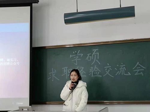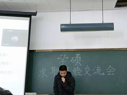 为了帮助学术型研究生更好了解就业形势,明确职业发展规划,提升自身竞争力,1月9日下午,管理学院研究生求职经验交流会在三牌楼校区教东101举行。本次会议由管理科学与工程专业的牛芳同学主持,邀请了2018级工商管理专业的张磊雷、邵丽娟、管理科学与工程专业的马巧慧、陈磊和丁乐蓉五位同学为2019级、2020级研究生分享实习经历和求职经验。