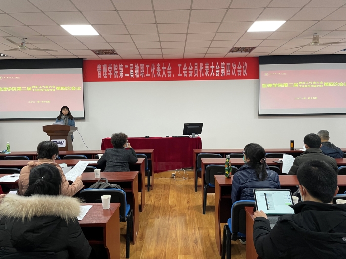 1月15日下午,管理学院第二届教职工代表大会暨工会会员代表大会第四次会议在三牌楼校区图科楼MBA中心324会议室举行,学院领导以及大会正式代表共34人参加大会,会议由学院党委副书记张建颖主持。