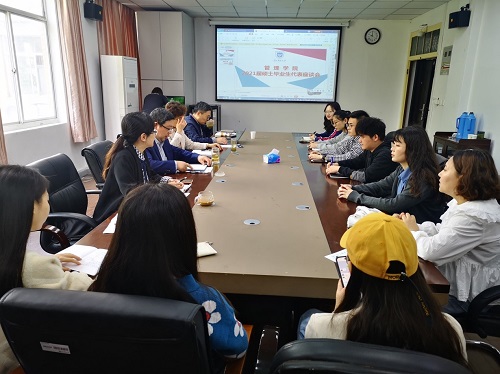 2021年4月26日10:00,管理学院在有线楼306会议室召开2021届毕业研究生座谈会,学院党委书记朱清、院长黄卫东、副院长张冲、辅导员华奕曦等教师和毕业研究生代表参加了本次会议,会议由学院党委副书记张建颖主持。