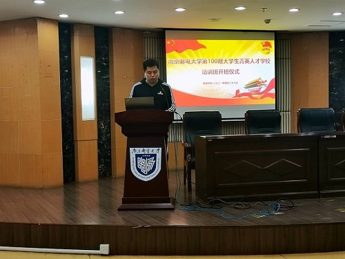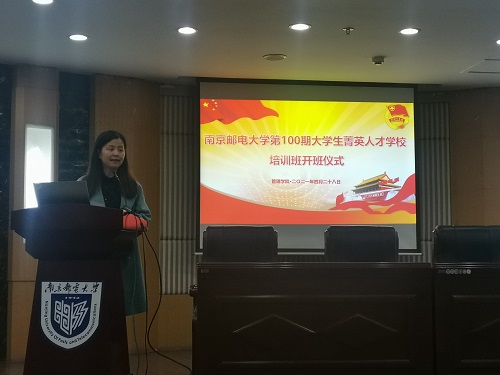 4月28日,由管理学院承办的南京邮电大学第100期大学生菁英人才学校培训班正式开班,管理学院党委副书记、副院长张建颖,全体菁英人才学校培训班学院出席。开班仪式由学院团委书记刘晓宁主持。