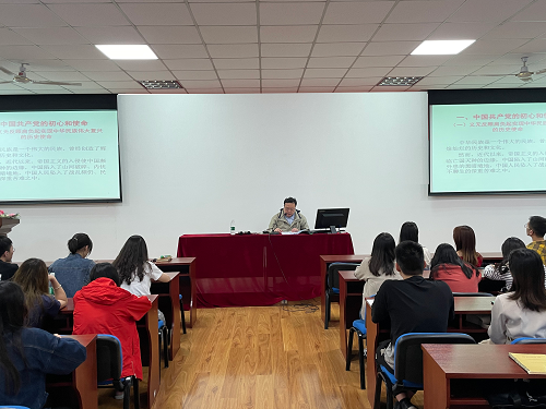 4月28日,管理学院本科2020级、2019级党支部在MBA中心3楼开展“红柚大讲堂”系列活动的第一讲。马克思主义学院、原理教研室主任何金海副教授应邀讲授了题为“百年风华忆初心,矢志建党一百年”的专题党课。本科2020级、2019级党支部书记孙晓峰老师主持本次活动。