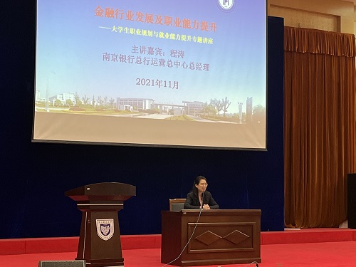 为了向管理学院的研究生们普及银行的相关知识,解析未来金融行业的发展,进一步丰富研究生们的职业选择,11月24日,南京银行总行运营总中心总经理程涛及其团队应管理学院邀请来我校三牌楼校区科学会堂二楼报告厅,开展 “金融行业发展及职业能力提升”的讲座。讲座由管理学院党委副书记、副院长郭强主持。