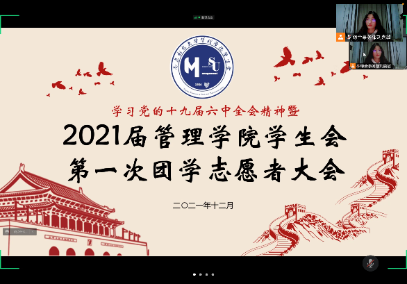 12月12日,管理学院学生会通过腾讯会议平台召开会议,学习党的十九届六中全会精神,管理学院分团委书记刘晓宁,管理学院学生会成员及全体团学志愿者参加会议。