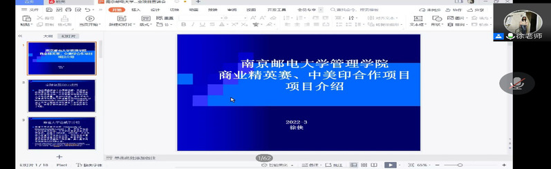3月30日晚上7时,管理学院举办了商业精英赛(中美印合作项目)线上宣讲会。我院徐侠老师、吴鸣然老师,2020、2021级全体辅导员及全体本科生参加此次宣讲会。