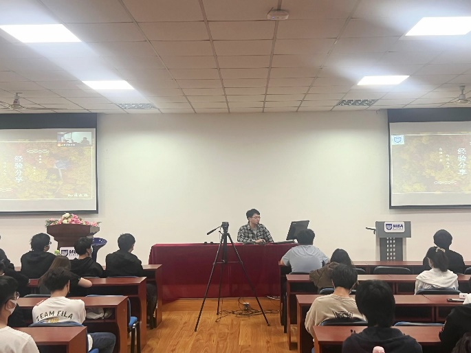 接着,管理学院2018级优秀学生陈文祺为同学们分享交流了的考研与就业方面经验。就业与考研主要根据个人自身情况决定。可以根据自己所学专业对未来进行规划,同时也根据自己的兴趣和志向做好自我定位、自我评估,做好长远持续发展准备,此外规划时要避免将自己框死在狭小的区域里,可以为自己找一个大致的方向,在前进的过程中逐渐明确自己的方向。