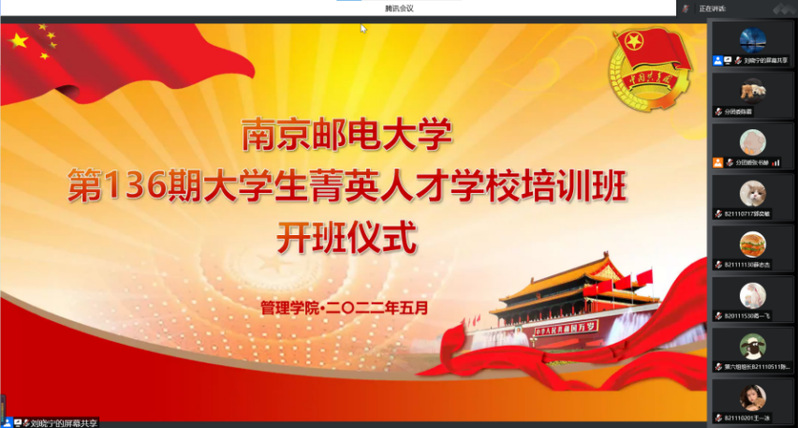 5月24日,由管理学院承办的南京邮电大学第136期大学生菁英人才学校培训班开班仪式暨开班第一课通过腾讯会议平台线上举行。管理学院党委副书记、副院长郭强出席,本期菁英人才学校培训班130余名学员参加。开班仪式由学院团委书记刘晓宁主持。