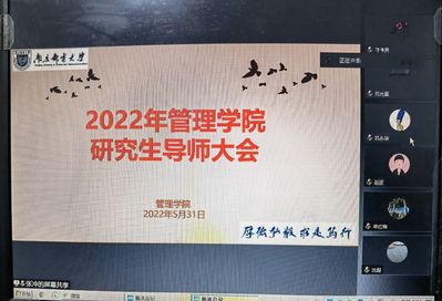 为进一步加强学院研究生导师队伍建设,规范研究生导师指导行为,提高研究生培养质量,2022年5月31日,管理学院组织召开研究生导师线上大会。会议由分管研究生教育的副院长张冲主持,学院全体导师参加了本次会议。