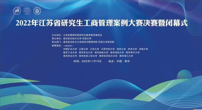 11月19日,由江苏省管理学类研究生教育指导委员会主办,南京航空航天大学与河海大学共同承办的2022年江苏省研究生工商管理案例大赛决赛圆满谢幕。我院参赛团队作品“江湖多风波,登山望烽火:波司登数字化转型之路”(团队成员:王亚琴、鹿文龙、罗国庆、王黄磊、饶渝、王晶菁;指导教师:王娟、黄卫东)取得了二等奖的好成绩,同时,学院也获得了最佳组织奖的荣誉称号。
