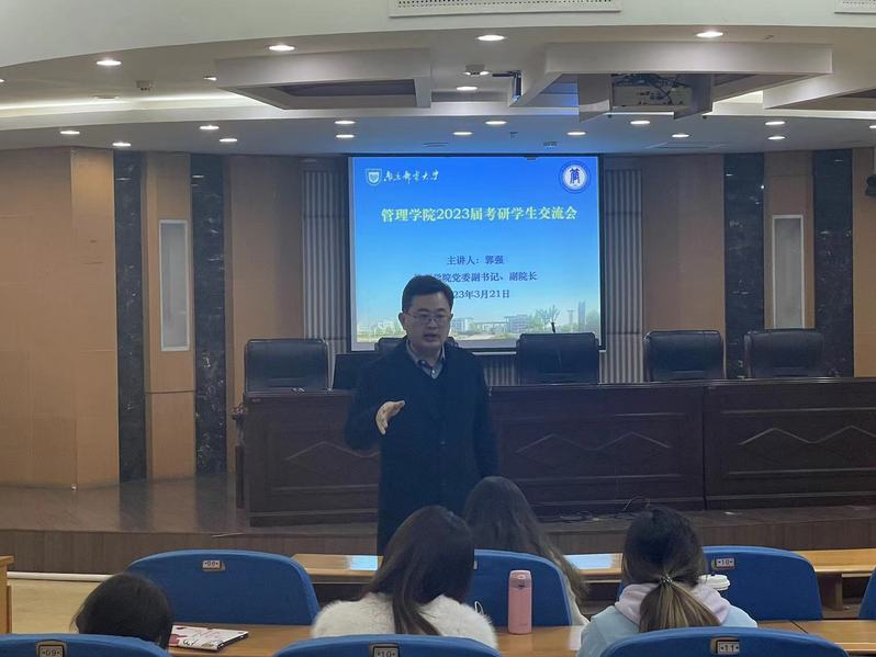 为了进一步增强管理学院考研学生的复试信心,掌握相关复试技巧。近日,管理学院在三牌楼校区科学会堂一楼报告厅召开了2023届考研培训会。本次会议由管理学院党委副书记、副院长郭强主讲,本科2019级辅导员宋晓含、孙晓峰,2019级部分考研学生参加了会议。