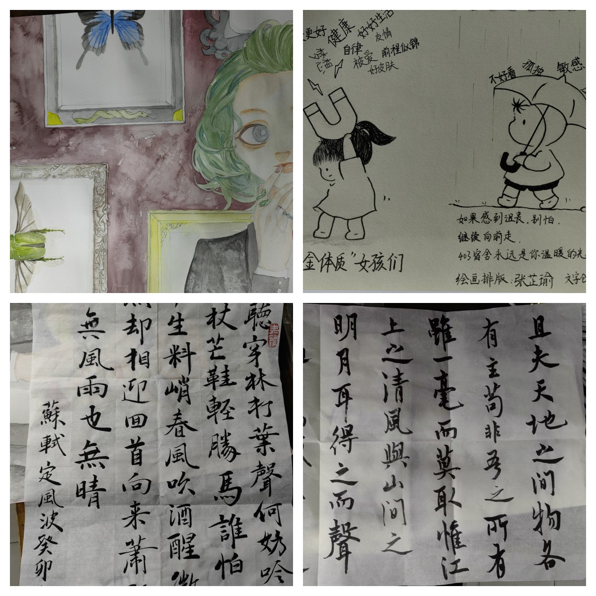 宿舍文化节启动以来,共面向我院全体本科生和研究生征集到宿舍装扮PPT展示作品24份、宿舍文化VLOG展示作品17份、软笔书法作品15份、绘画作品6份,作品题材丰富、形式多样,内容主题突出、阳光正面,充分展现我院学生和谐融洽、丰富多彩的宿舍生活和装扮精美、文明和谐的宿舍环境,也展现了我院学生在文艺创作、艺术水准上的较好水平。经过学院组织评审,优秀作品将推报参与校级评审并在学院官方新媒体平台择优展示,进一步发挥优秀宿舍的示范、带动作用。