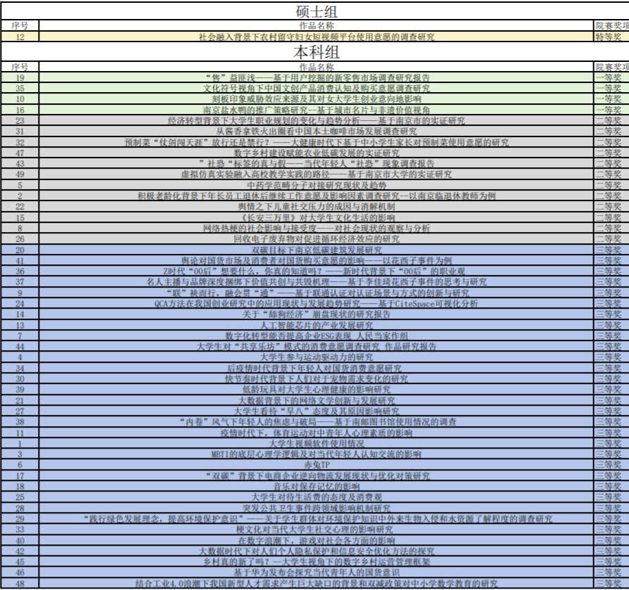 近年来,我院深挖科创竞赛的学科特点,将“创新杯”赛事和其他商科类竞赛作为学院主攻点,焕发创新精神、激发创新意识、孕育创新青年,通过科创竞赛激发学生的创新热情,提升学生的科研能力,在一系列科创竞赛中屡获佳绩。今后我院将继续加强对相关科创竞赛的指导和支持力度,进一步提升学生的科创水平和学风建设,实现我院科研实践水平迈上新台阶。