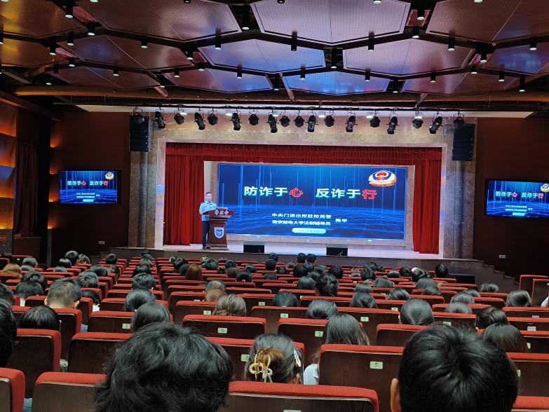 为切实增强学生安全防范意识,有效预防和减少电信网络诈骗案件发生,筑牢校园安全防线,9月23日晚18点,我院面向2025级、2024级全体本科生在华礼堂举办安全教育专题讲座,邀请南京市鼓楼区中央门派出所陶华警官普及防诈反诈知识。2025级新生辅导员蔡珺老师主持,南京邮电大学保卫处刘庆霄老师出席会议,会议由2025级新生辅导员蔡珺老师主持。