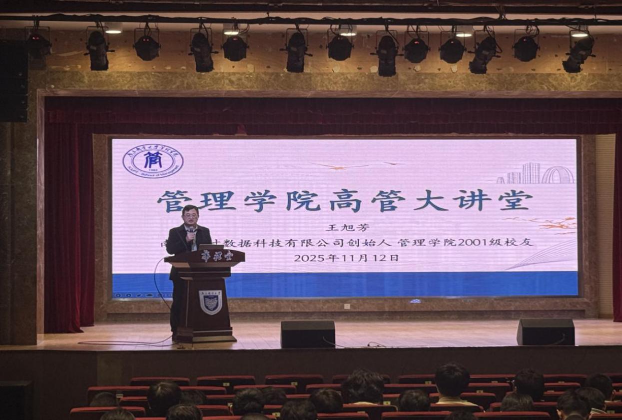 11月12日下午,第十一期管理学院高管大讲堂活动在三牌楼校区华礼堂顺利举行。本次活动以“AI时代的破‘卷’心法”为主题,邀请南京橙时数据科技有限公司创始人、管理学院校友会副秘书长、2001级校友王旭芳主讲。本次会议由管理学院党委副书记、副院长郭强教授主持,各年级本科生、研究生代表参加会议。