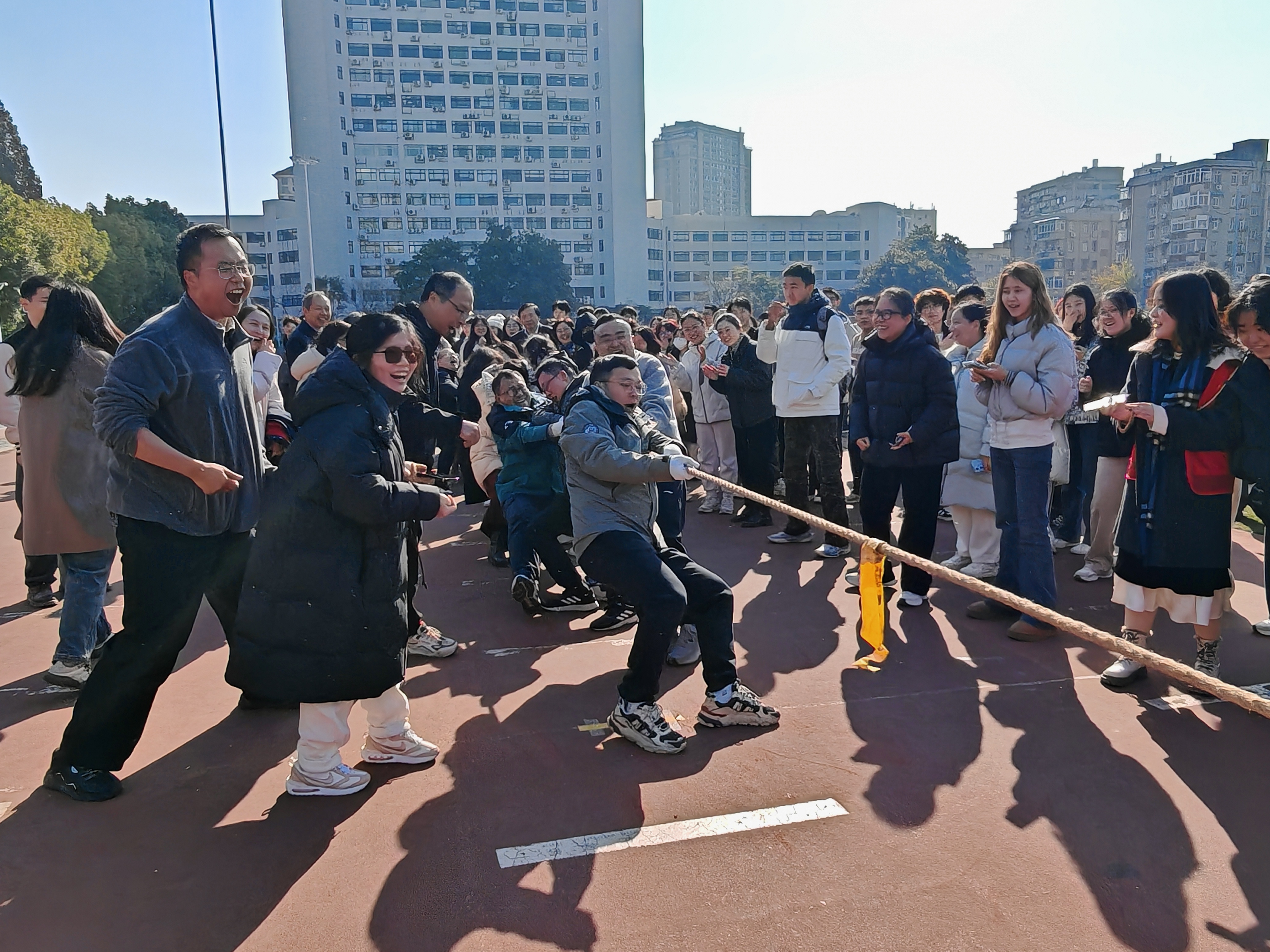 为丰富教职工的文化生活,提高教职工的身体素质,增强各工会小组凝聚力。12月3日下午,管理学院教职工在三牌楼校区操场举行2025年教职工冬季拔河比赛。