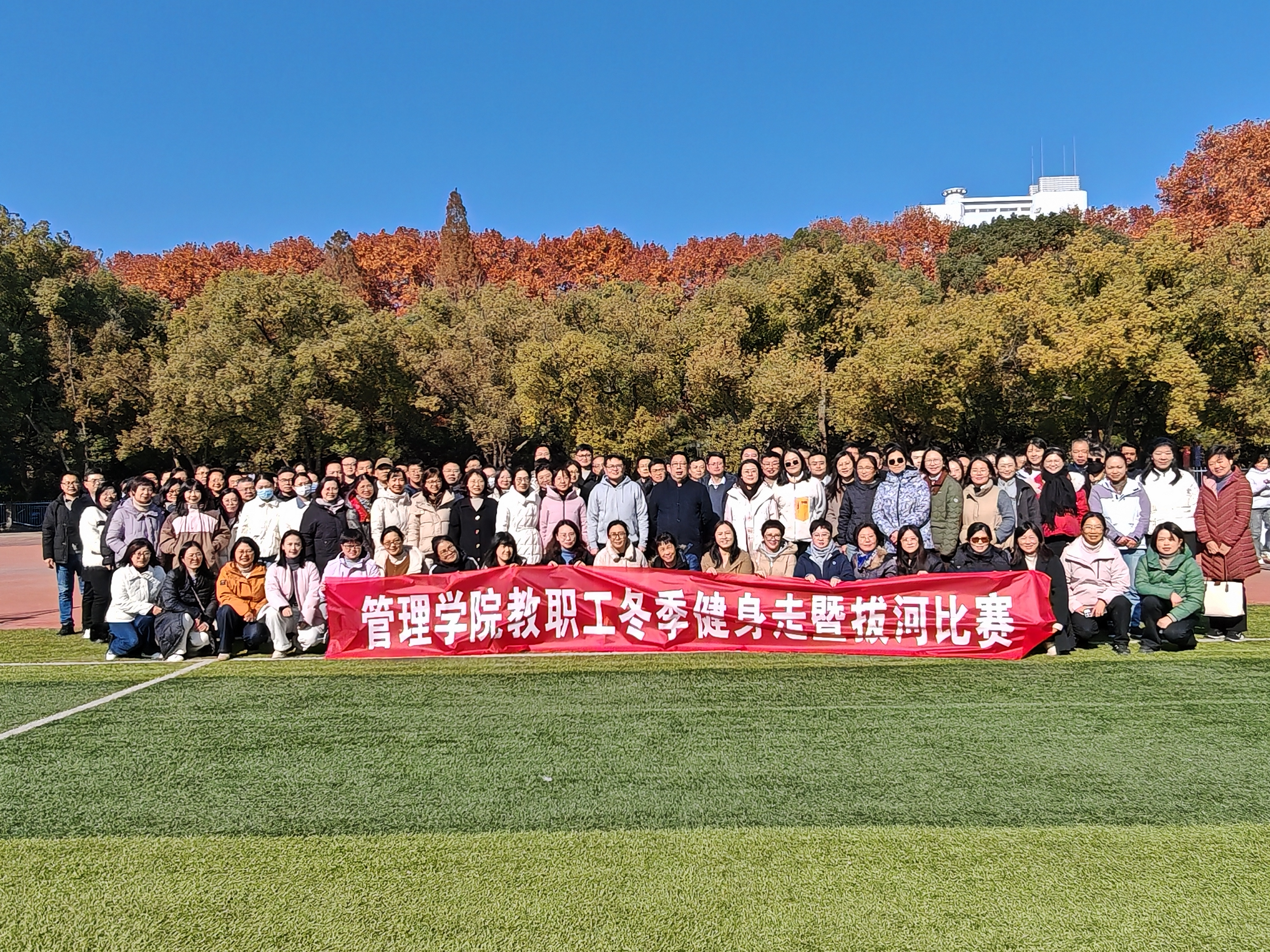 本次活动旨在引导教职员工融入自然、体验健身、促进健康,号召大家养成绿色健康、科学文明的生活方式。活动开始前,大家三牌楼操场合影留念,活动开始后学院教职工精神饱满,激情满怀,充分展现了管理学院教师积极乐观、健康向上的精神风貌。