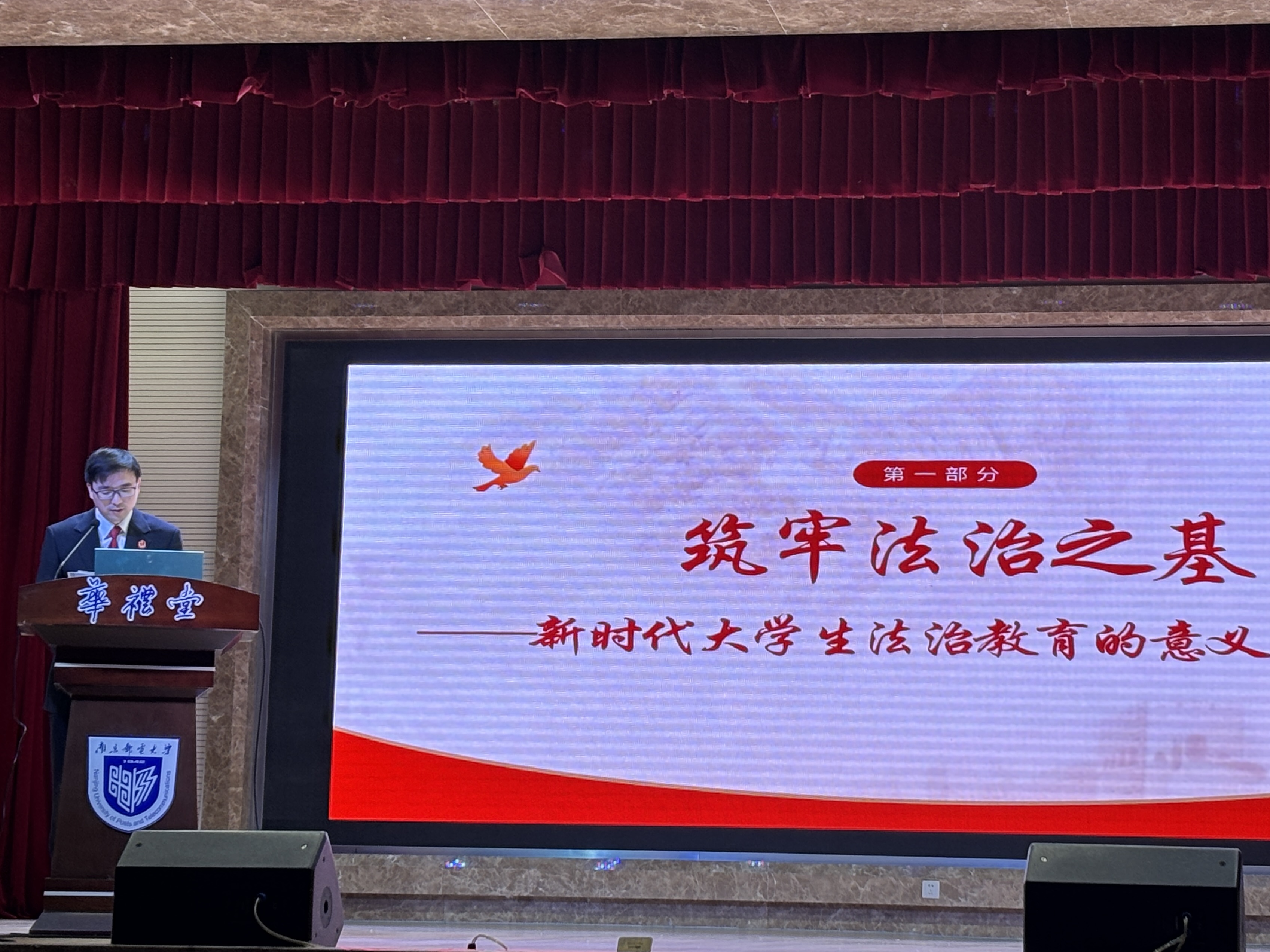为深入推进法治校园建设,切实增强大学生法治意识与安全防范能力,管理学院于3月18日下午在华礼堂举办法治安全教育专题宣讲会。本次活动特邀我校法治辅导员、鼓楼区法院刑庭副庭长吴志坚主讲,2023级辅导员孙晓峰老师主持,管理学院大一、大二全体本科生和部分研究生参与活动。