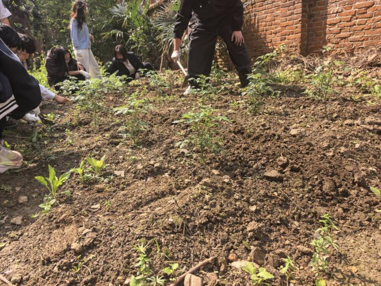 四月的三牌楼校区绿意盎然,学一学二之间的小菜园迎来了一群朝气蓬勃的青年学子。下午两点三十分,同学们准时集合,在辅导员简要说明安全注意事项和分工安排后,大家迅速投入到热火朝天的劳动中。